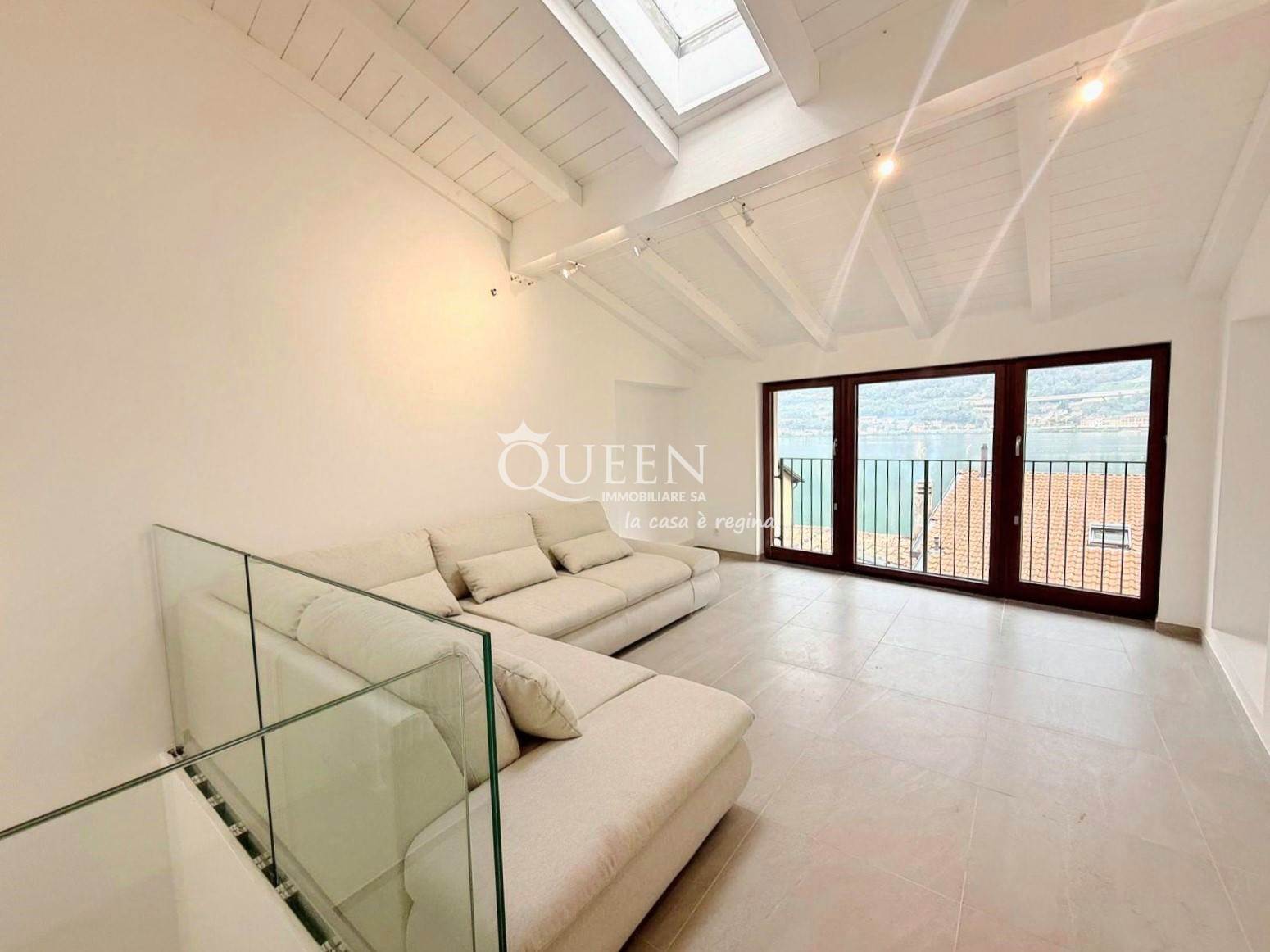 - Helle Wohnbereich mit sichtbaren Balken an der Decke, Wohnzimmer mit herrlichem Seeblick und voll ausgestattete Küche.