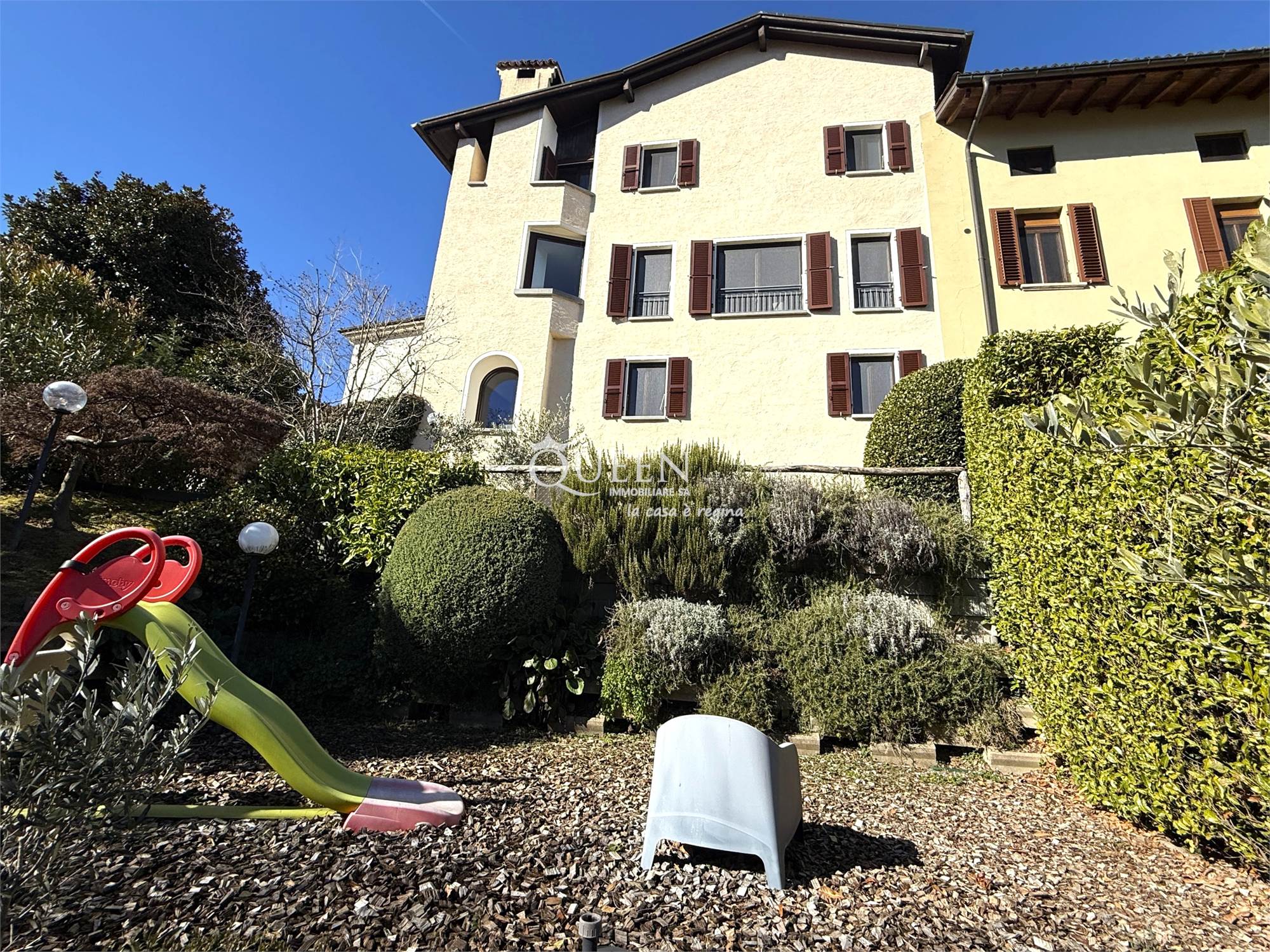 Montagnola: casa 7.5 locali, 4 camere, 4 bagni, 2 posti auto, giardino e vista lago.